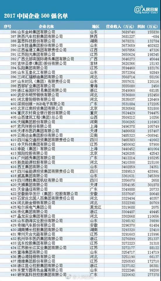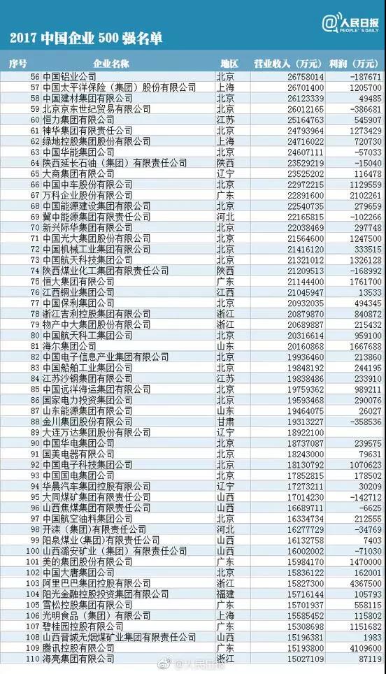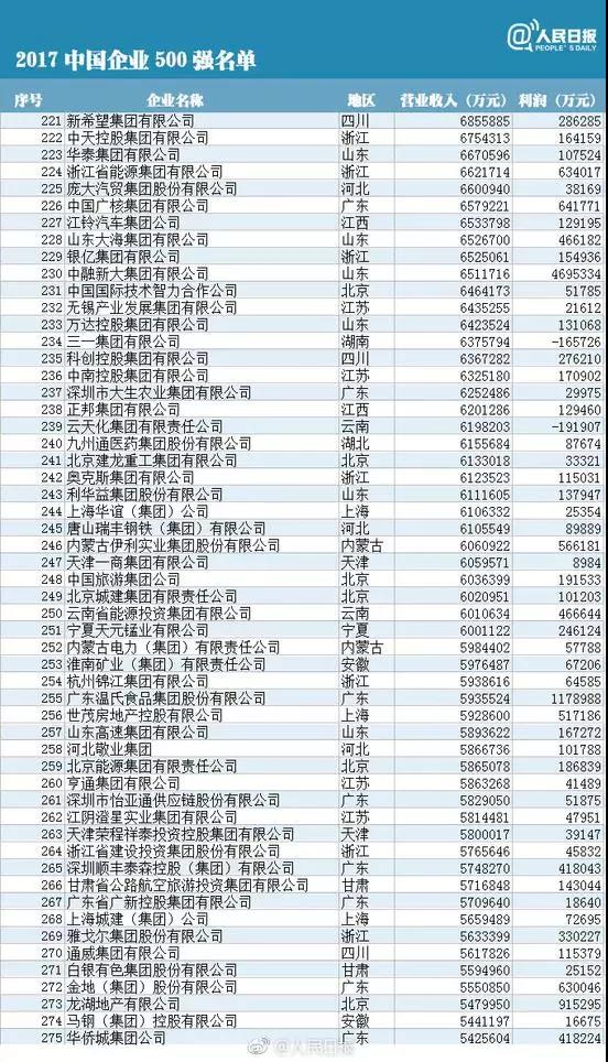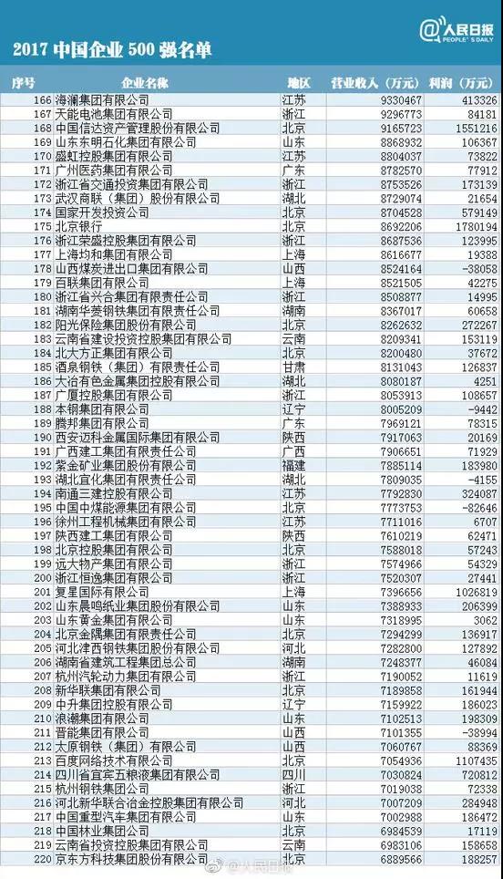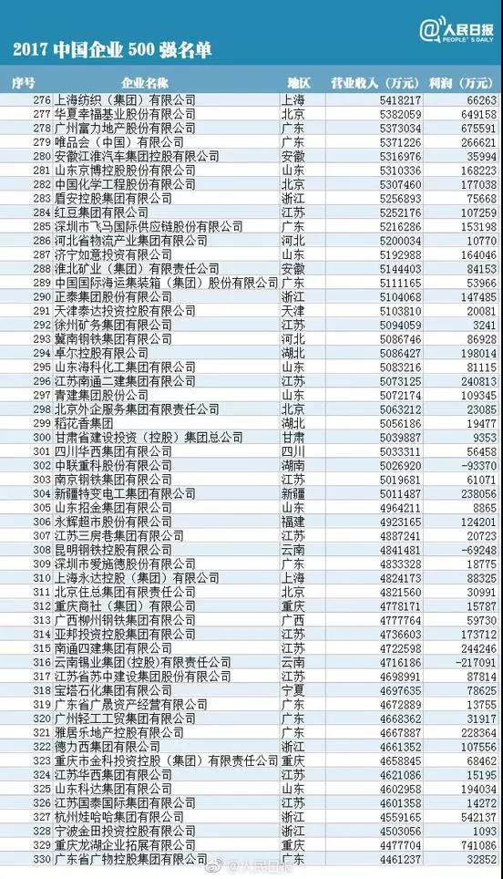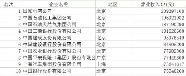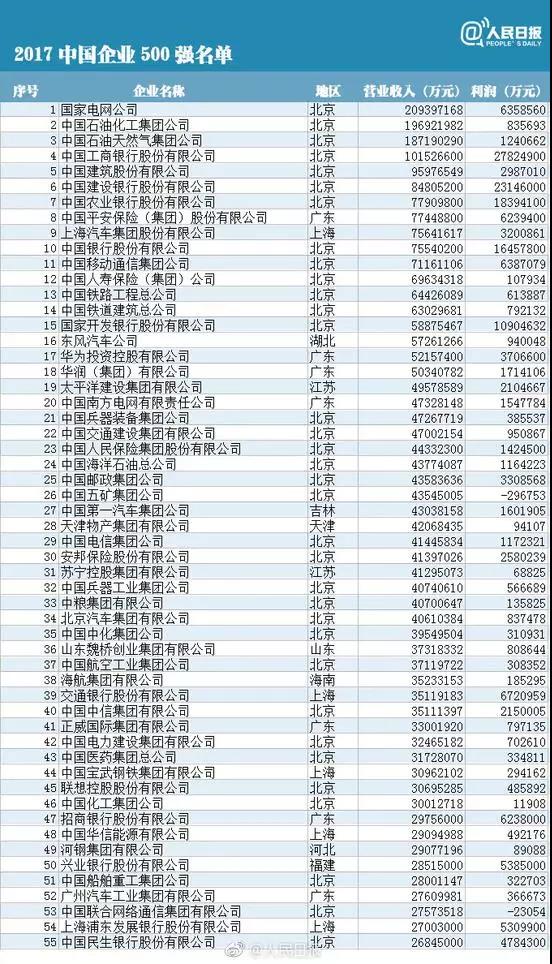 10, the China Enterprise Association and the China Entrepreneur Association issued the sixteenth list of "top 500 Chinese enterprises" for the first time. Among the top 500 Chinese enterprises, the national Power Grid Corp, CNPC and China Petroleum and chemical group ranked top 2017. So, what about the top 500? The reporter combs for you.