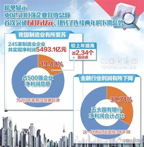 Bank, bank or bank?! Engineering, construction, agriculture, the big five banks, coupled with the National Development Bank, the total profit of 6 banks more than 1 trillion yuan, accounting for 500 total profit of more than 36.6%; and 500 of the top 245 manufacturing enterprises, total net profit of 549 billion 310 million yuan, accounting for 500 of the total net profit of 19.53%. The total profits of the 245 companies are only half the profits of the 6 banks.