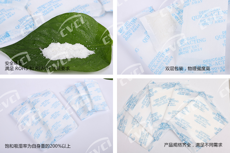 速效干燥劑是以高效活性吸附物為原料,經(jīng)精確計(jì)算,科學(xué)調(diào)配后組成。包裝采用杜邦紙與高級(jí)無(wú)紡布雙層包裝,印刷精美,使用方便。該產(chǎn)品規(guī)格齊全,可滿(mǎn)足不同產(chǎn)品的防潮、防銹包裝需求。