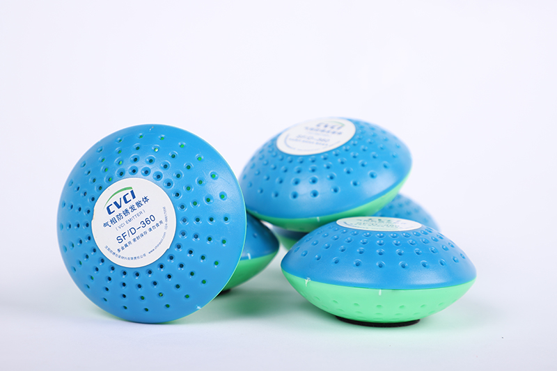 氣相防銹發(fā)散體是一種是由內(nèi)置氣相防銹劑并帶有背粘膠的多孔狀塑料殼體組成,適用于封閉空間內(nèi)特別是潔凈環(huán)境要求的金屬防銹。在常溫狀態(tài)下,氣相防銹發(fā)散體通過持續(xù)的氣化、擴(kuò)散,到達(dá)并吸附在金屬表面,形成分子級保護(hù)膜,有效地防止金屬表面銹蝕。